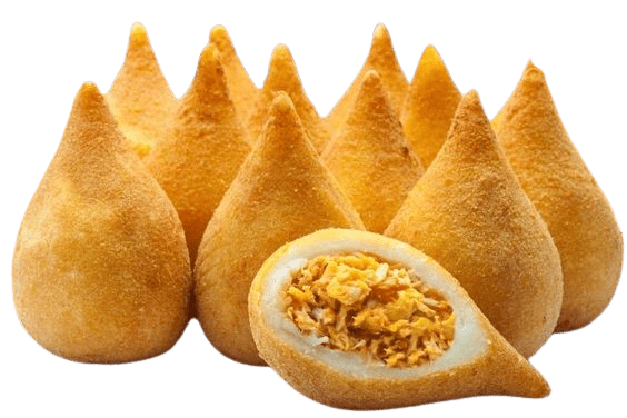 Deliciosa coxinha recheada, crocante por fora, macia por dentro